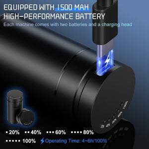 4. Long Battery Life: Equipped with a 2000mAh rechargeable battery, the Megrez Tattoo Gun offers up to 8 hours of continuous use on a single charge, allowing for extended sessions without interruptions.