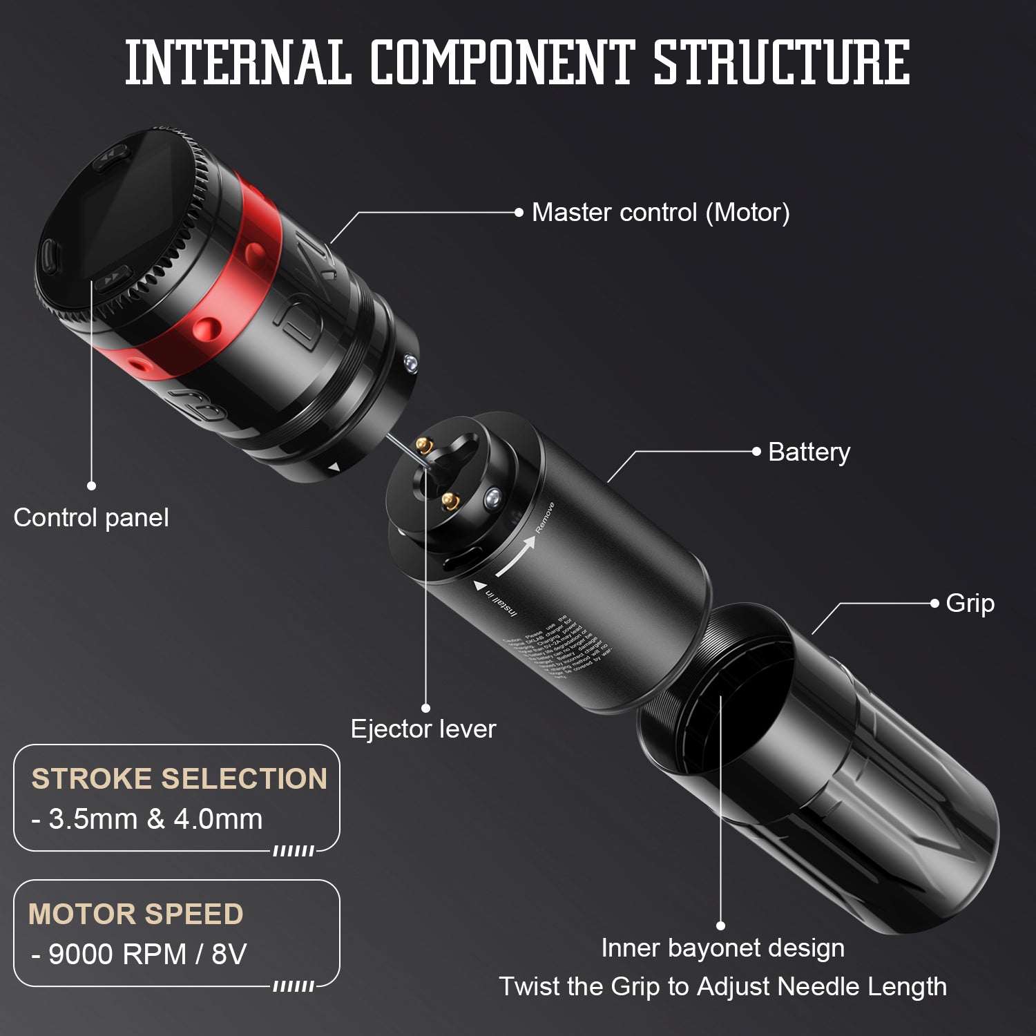2. Adjustable Stroke System: With an adjustable stroke range from 2.5mm to 4.0mm, the tattoo gun is suitable for a variety of techniques, including fine lines, shading, and coloring.