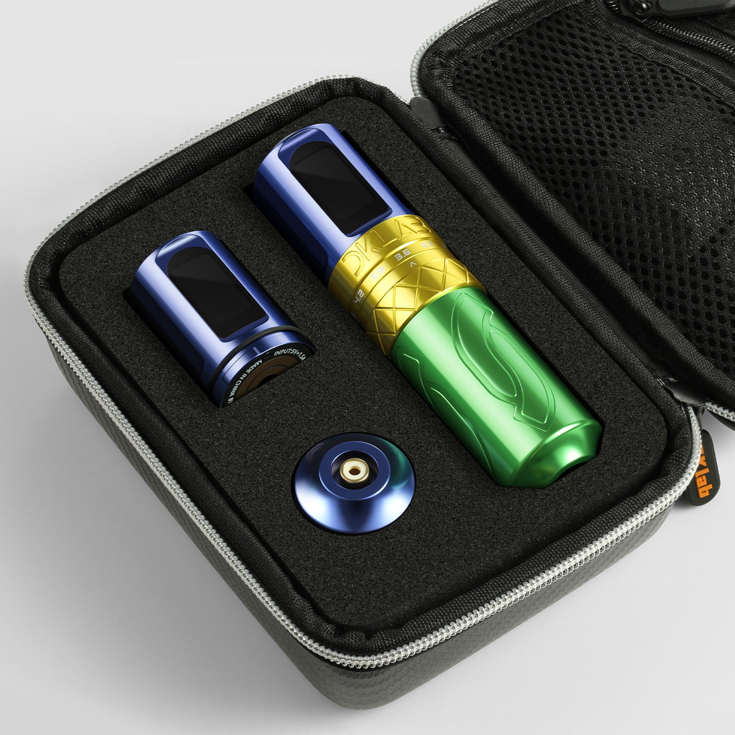 DKLAB Mizar support 7 different strokes which can adjust from 2.7mm to 4.5mm by turning the ratchet wheel knob on the pen waist.And the extension length of the needle tip can be adjusted by rotating the Grip.Mizar wireless tattoo gun kit loaded customized Japanese motor which can supply powerful force,accurate and excellent assembly processes ensure stability and quietness during operation to support a good performance in the tattoo artists' mission. Mizar's battery upgraded the control system,the better electronic components,which are more responsive and can more accurately manage the battery power supply system.Matched with Mizar's motor is a precision machining drive system,all completed by precision machining with minimal work errors,ensuring Mizar's excellent performance during tattooing.Good at creating lining,layering,shading and blending,no matter it's traditional or realistic style,Mizar can easily control it,with fast and stable coloring,avoiding repetitive work to improve efficiency,and minimal skin damage.It is a good tool that can adapt to many professional tattoo artists.Approved & finished by strict quality testing steps,personal evaluations from experienced tattoo artists and warranty policies,Mizar is a tattoo pen that can be trusted by all tattoo artists around the world.